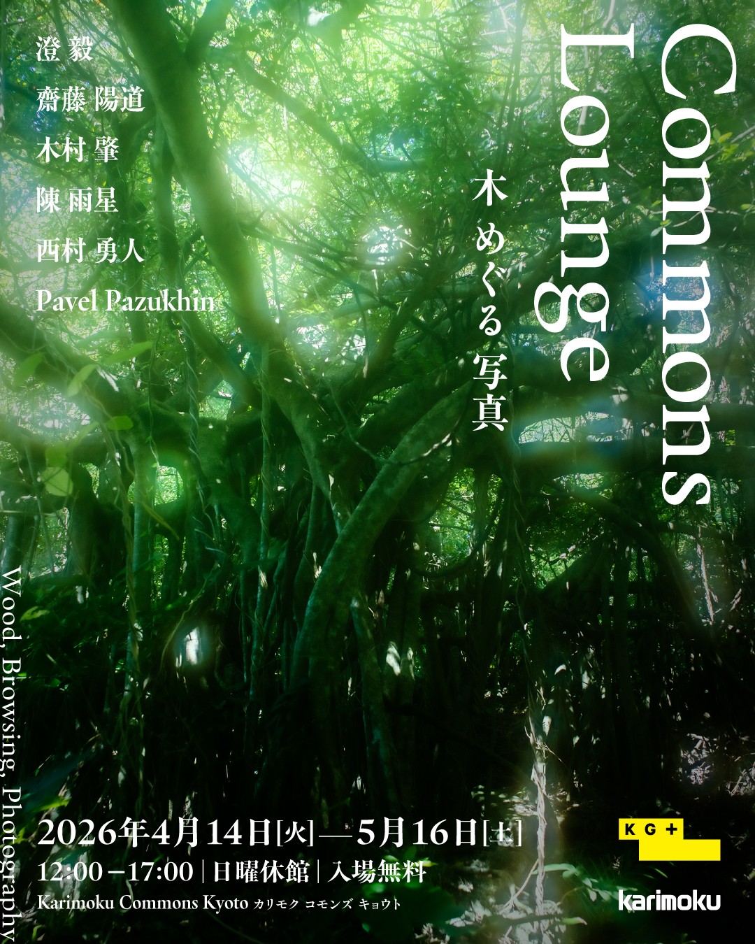 Karimoku Commons Kyotoでは、KG+との共同企画として「Commons Lounge ー木 めぐる 写真」を開催いたします。 本展では、KG+2026参加作家の中から、コンセプトに深く共鳴する6名を選出いたしました。